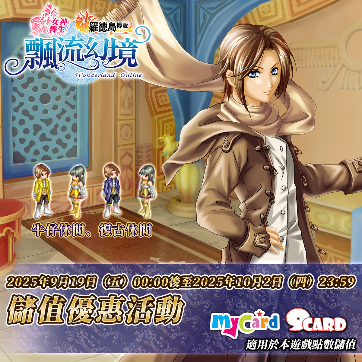 《飄流幻境Online羅德島傳說》9月19日儲值優惠活動 活動時間:2025年9月19日(五)00:00後至2025年10月2日(四)23:59