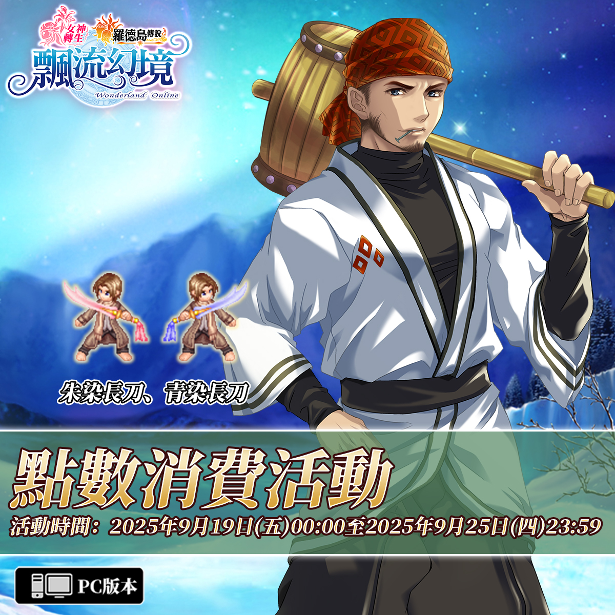 《飄流幻境Online羅德島傳說》9月19日點數消費活動 ◎活動時間:2025年9月19日(五)00:00至2025年9月25日(四)23:59止
