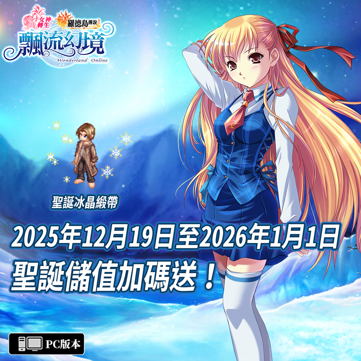 《飄流幻境Online羅德島傳說》將於2025/12/19(五)00:00起至2026/1/1(四) 23:59期間,舉辦《聖誕儲值加碼送》。玩家於活動期間內,儲值累計達到指定面額,就會獲得超值加碼好禮!