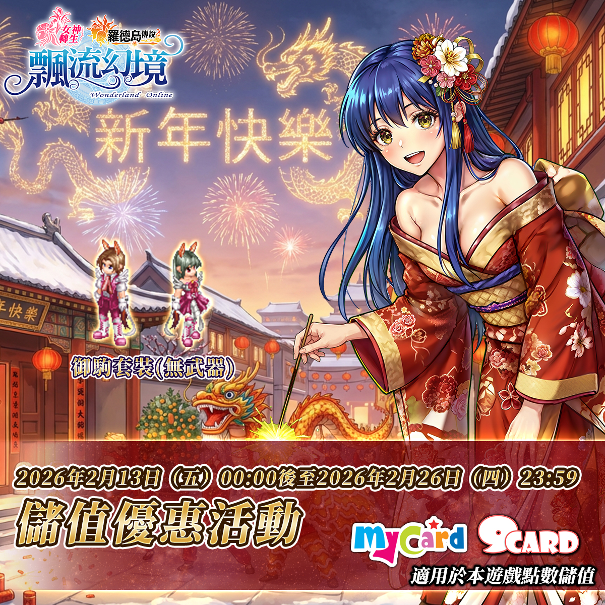 本次儲值優惠,所有數值計算均以玩家儲值時的點數為準,例如:王小民在2月13日00:00之後儲值了400點數,實際計算的活動為「400點數」,敬請留意!只有於2026年2月13日(五)00:00後至2026年2月26日(四)23:59儲值,才會算為這次儲值點數回饋活動時間。