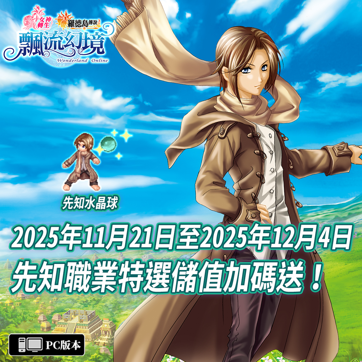 《飄流幻境Online羅德島傳說》將於2025/11/21(五)00:00起至2025/12/4(四) 23:59期間,舉辦《先知職業特選儲值加碼送》。玩家於活動期間內,儲值累計達到指定面額,就會獲得超值加碼好禮! 【先知職業特選儲值加碼送】